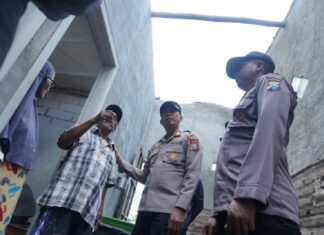 Puting Beliung Rusak Rumah Tukang Becak, Kapolsek Pungging Serahkan Bantuan Asbes