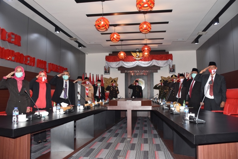 Usai upacara, Bupati Pungkasiadi bersama para undangan Forkopimda Mojokerto, mengikuti upacara Detik-Detik Proklamasi Kemerdekaan HUT RI ke-75 secara virtual di ruang command center Kabupaten Mojokerto. Upacara disiarkan secara live dari Istana, dengan dipimpin Presiden Joko Widodo selaku inspektur upacara.