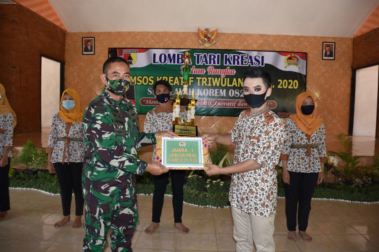 Danrem dalam sambutannya menjelaskan lomba tari kreasi diikuti generasi muda sewilayah Korem 082/CPYJ dalam rangka Komunisasi Sosial Kreatif Triwulan III TA 2020.
