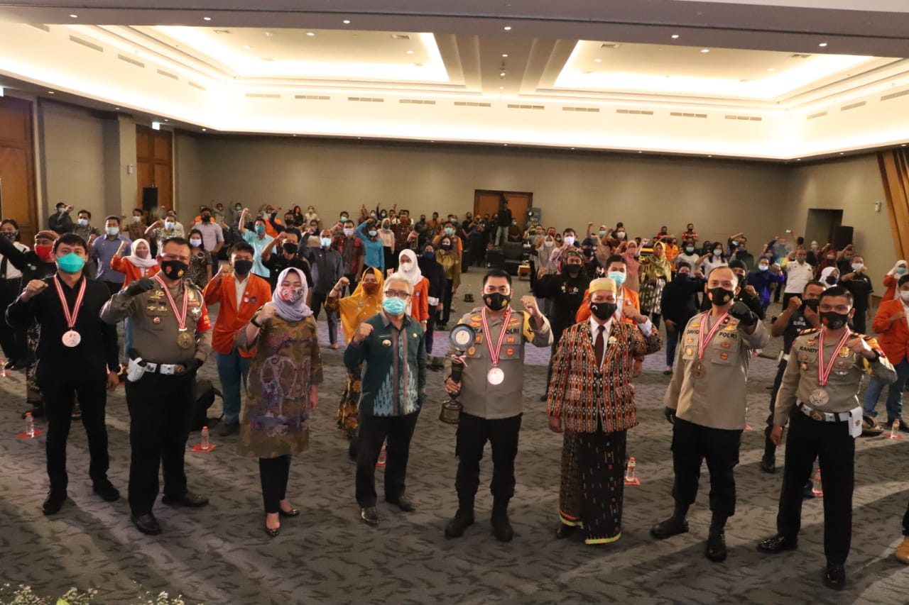 IM.com – Demi menyatukan persepsi dan mindset pentingnya menaati protokol kesehatan di masa pandemi Covid-19, Polres Mojokerto menggelar kegiatan Hypnotherapy Tangguh Semeru, Sabtu (24/10-2020) pagi di Hall Ayola Sunrise Mojokerto.