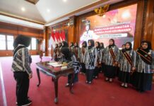 IM.com – Suasana tampak berbeda jelang Hari Ulang Tahun (HUT) Kemerdekaan RI di halaman pendopo Pemerintah Kabupaten Mojokerto, Jumat (12/8/2022). Kemeriahan terlihat dari lomba khas 17 Agustusan yang diikuti Bupati Ikfina Fahmawati dan jajaran Forkopimda, serta pejabat teras hingga staf.