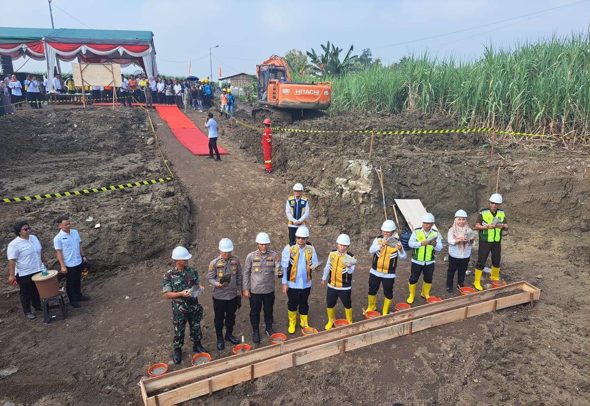 Bupati Mojokerto dan Wakil Bupati Mojokerto bersama Sekdakab Mojokerto serta jajaran forkopimda melaksanakan peletakan batu pertama rekontruksi jembatan Talunbrak Kecamatan Dawarblandong