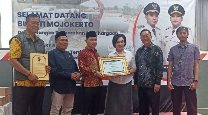 Penyerahan penghargaan Perusahaan Tertib Ukur kepada PT Calvary Abadi yang berdiri sejak tahun 1990 diberikan langsung Bupati Mojokerto Al Barra di Kantor PT Calvary Abadi Kamis (2/10-2025) pagi.