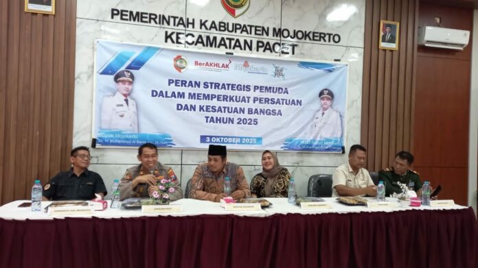 Polsek Pacet bersama anggota DPRD Kabupaten Mojokerto serta jajaran Forkopimca menggelar Diskusi Pemuda 2025 bertajuk “Peran Strategis Pemuda dalam Memperkuat Persatuan dan Kesatuan Bangsa”