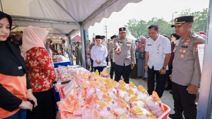 Polda Jatim juga menghadirkan pasar murah di lokasi kegiatan sebagai bentuk nyata kepedulian terhadap daya beli masyarakat. Sebanyak 2 ton beras dijual dengan harga terjangkau, yakni Rp57.500 per 5 kilogram.