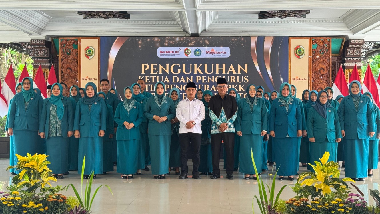 Pengukuhan pengurus Penggerak PKK Kabupaten Mojokerto berdasarkan Keputusan Bupati Mojokerto Nomor 188.45/389/HK/416-012/2025. Shofiya Hanak Al Barra ditetapkan Ketua TP PKK Kabupaten Mojokerto.