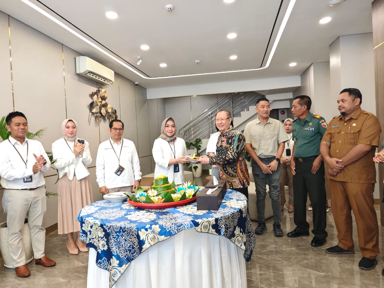 Selanjutnya tamu undangan dipersilahkan masuk ruangan utama kantor BNI Benteng Pancasila dengan nuansa elegan. Warna abu tua yang mendominasi dinding dan mebeler serta lantai nampak makin elegan balutan garis emas yang menempel di dinding.