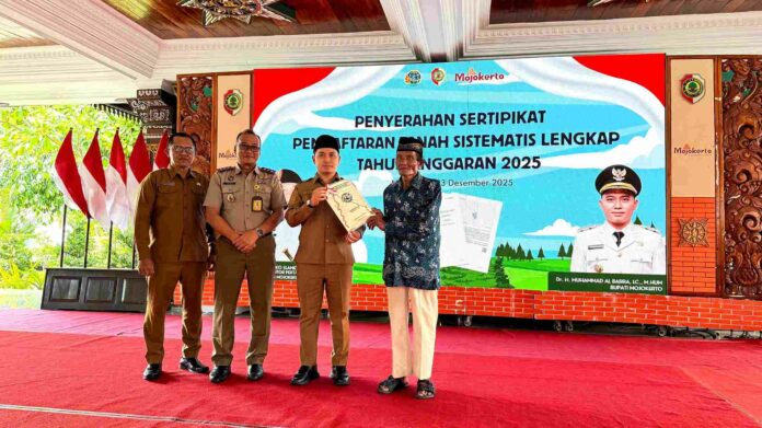 inilahmojokerto.com — Pemerintah Kabupaten Mojokerto bersama Kantor Pertanahan ATR/BPN Kabupaten Mojokerto terus memperkuat perlindungan hak atas tanah masyarakat melalui Program Pendaftaran Tanah Sistematis Lengkap (PTSL) Tahun Anggaran 2025.