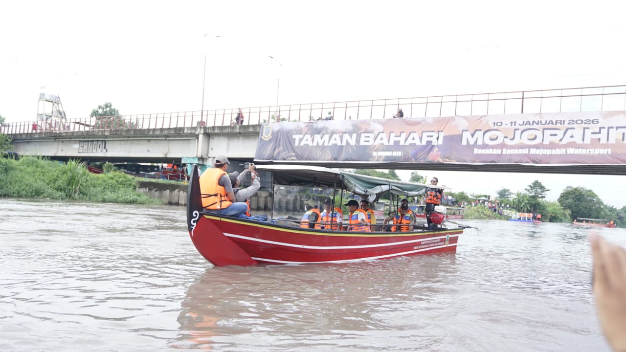 “Taman Bahari Mojopahit ini memiliki salah satu wisata yang disebut dengan susur Sungai Ngotok. Kita akan uji cobakan hari ini karena kita sudah mempersiapkan kelayakan untuk operasional, mulai dari operator yang telah bersertifikat, izin operasional, hingga sarana dan prasarana yang sudah tersedia,” terangnya.