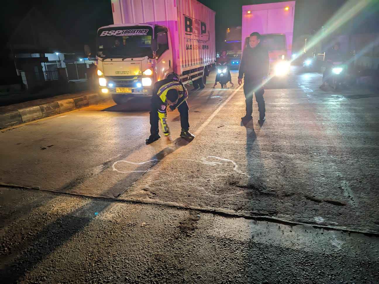 Pada waktu bersamaan, sebuah truk yang melaju dari arah belakang tidak dapat menghindar, sehingga menyebabkan terjadinya kecelakaan lalu lintas.