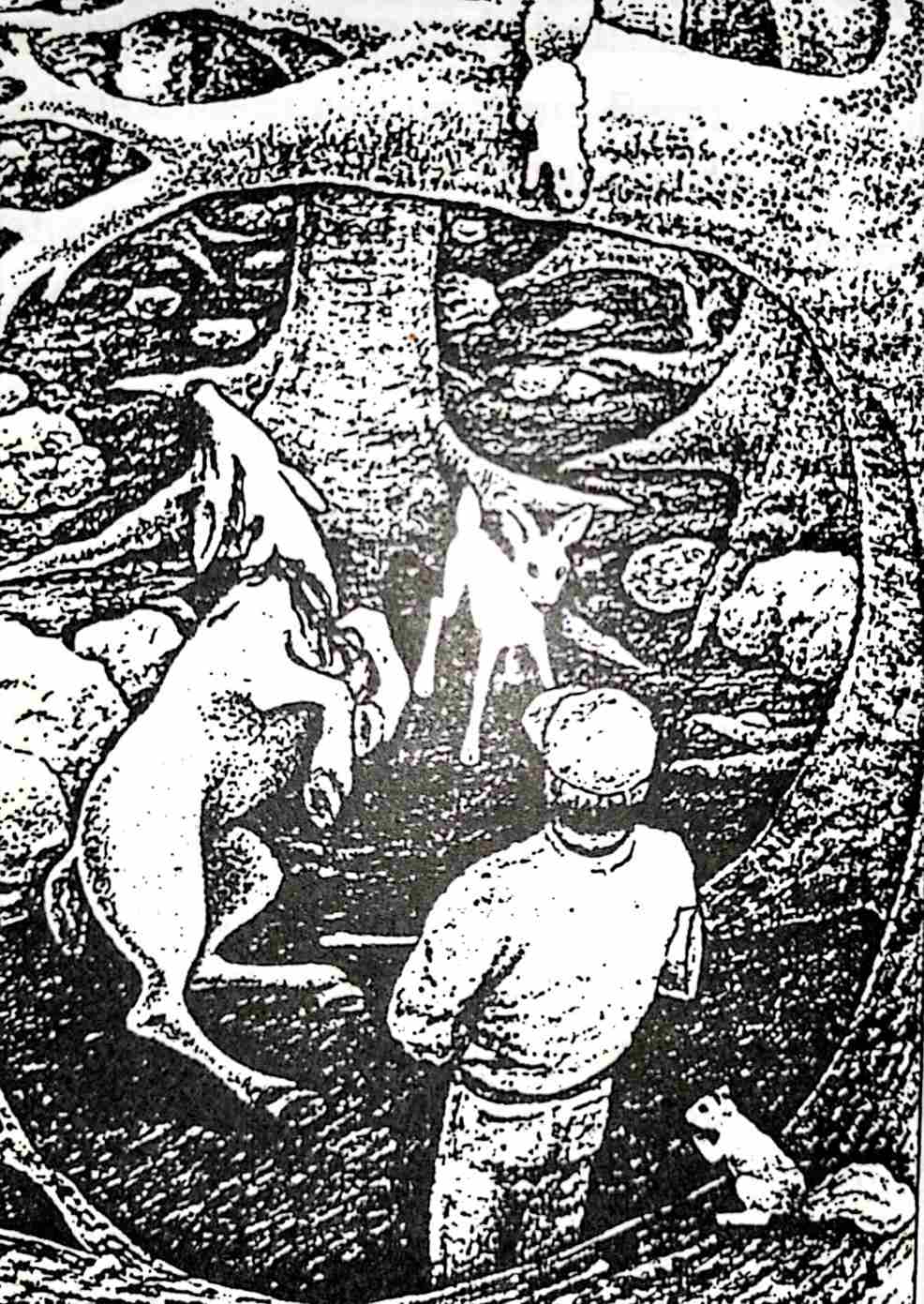 Sekarang, laki-laki itu sedang berburu, membunuh, dan makan seperti ini hampir sepanjang hidupnya. Kemudian, pada suatu hari, dia menemukan seekor rusa yang sedang menyusui anaknya. Ini membuatnya gembira, karena dia lelah dan tahu bahwa rusa tersebut tidak bisa kabur pada saat menyusui bayinya, jadi dia menembaknya.