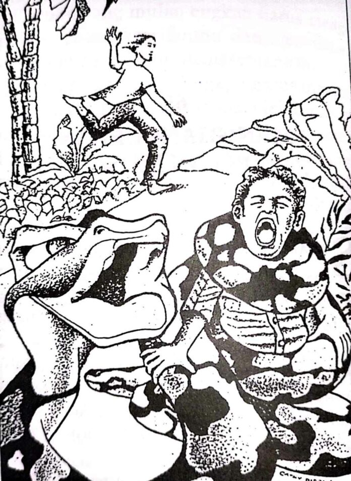 Jangan sampai engkau tertangkap! Engkau harus menghindar! Jika piton itu menangkapmu, wahai cucu-cucuku, maka tamatlah riwayatmu. Seorang manusia bijak tentulah dengan mudah dapat membunuh ular ini, tetapi sebelum engkau memiliki kearifan tersebut engkau harus menemukan cara untuk menghindar.