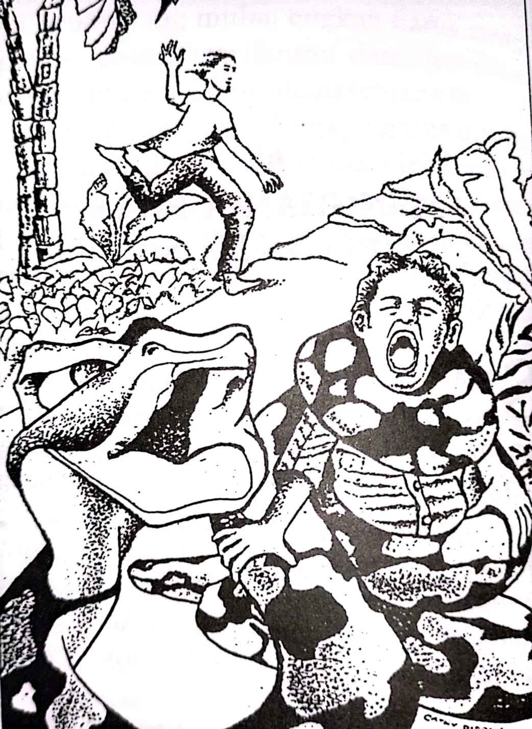Lihat, ia berlalu tanpa mengganggu kita. Oh tidak! Di sini muncul seekor piton. Ia berjalan lurus ke arah kita. Cepat, menghindarlah! Seekor piton tidaklah menggigit, ia membelit korbannya dan kemudian menelannya.