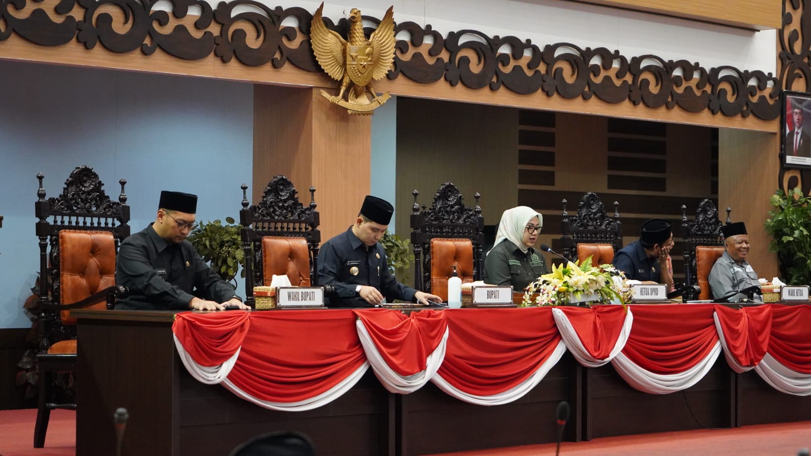 Paripurna yang membahas penetapan keputusan DPRD tentang Perubahan Proper Pemda Tahun 2026 dilaksanakan di Graha Whicesa pada Kamis (05/03-2026) dipimpin Ketua DPRD Kabupaten Mojokerto Ayni Zuroh didampingi wakilnya yakni, Khoirul Amin, Hartono, dan Winajat