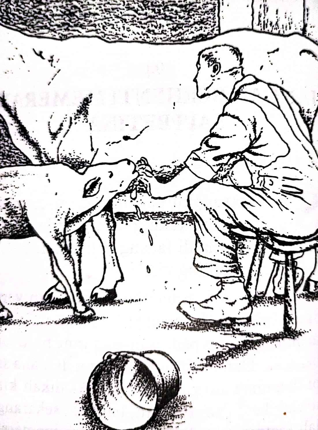 Sekarang anak-anak sapi menyusu pada dagu induknya. Semakin banyak ia menyusu, maka semakin banyak ia mengeluarkan air liur, sehingga anak sapi itu hanya menelan ludahnya sendiri. Anak sapi itu tidak mendapatkan susu dengan cara ini! Tidak adakah cara lain yang lebih baik?