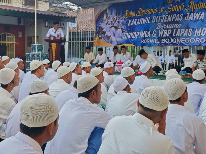 inilahmojokerto.com – Lembaga Pemasyarakatan (Lapas) Kelas IIB Mojokerto menggelar kegiatan buka bersama dan Safari Ramadhan 1447 H yang dihadiri jajaran pemasyarakatan, Forkopimda Mojokerto Raya, serta seluruh warga binaan.