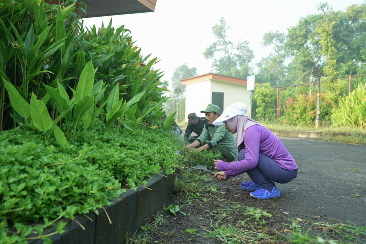 Selain membersihkan area, jajaran pemerintah juga mengecek fasilitas yang perlu dibenahi.