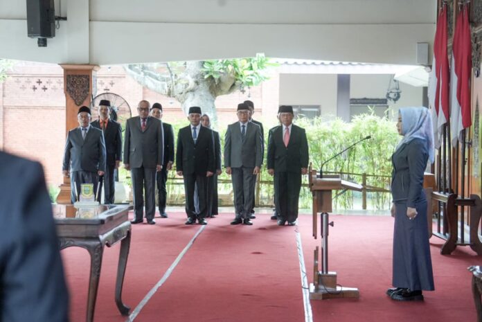 Wali Kota Mojokerto Ika Puspitasari mengambil sumpah pegawai negeri sipil (PNS) sekaligus melantik pejabat fungsional di lingkungan Pemerintah Kota Mojokerto, Senin (20/4/2026).