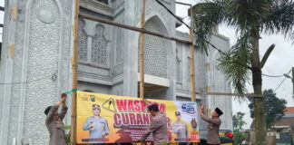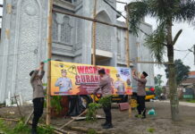 Polsek Pacet Pasang Spanduk Imbauan Waspada Curanmor Saat Tarawih dan Subuh