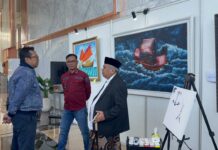 inilahmojokerto.com - Pameran Lukisan Lidi Profesor Bambang “Mas Mbenk” Tjahjadi resmi digelar di Pelindo Place, Surabaya, pada 13–16 April 2026.